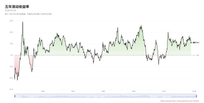 9. 这个看板展示了在职意时辰买入标普500并执有5年,能拿到的复合年化讲述:
