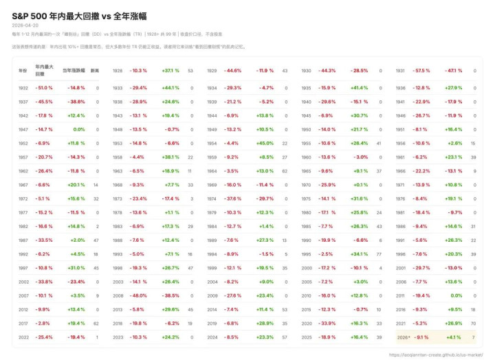 99 年里平均年内回撤-16.2%,哪怕是最终正收益的年份,期间也不乏惊皇失措,快乐飞艇下载这把要完: