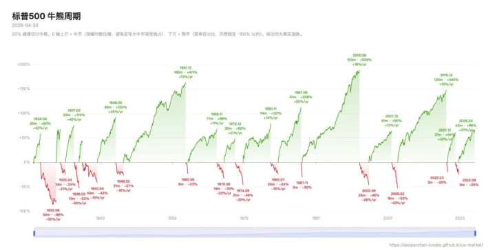 百年好意思股未必有 12-13 次无缺牛熊轮回。要是只算时辰占比,牛市未必是熊市的4倍以上。