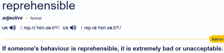 reprehensible adj. 应受斥责的;应受谴责的;不谈德的