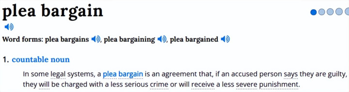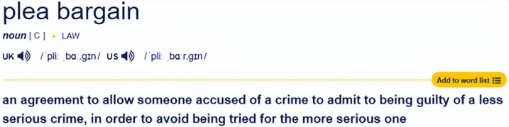 plea bargain n. (被告承认轻罪以幸免重罪告状的)认罪辩诉契约
