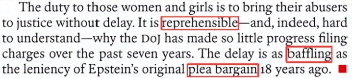 咱们沿途来学习The Economist February 14th 2026 Leaders "Jeffrey Epstein’s associates — The 1.4m deadly sins — The Epstein files tell a story of justice denied"这篇著作的倒数第一段。