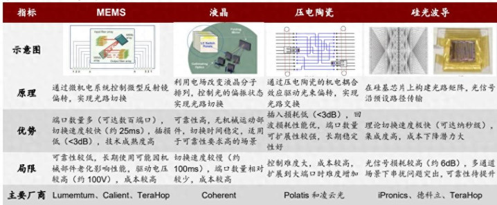 招商证券陈诉提供了精通对比:MEMS决策进修度高,但始终可靠性存疑;液晶决策端口数目多,快乐彩app下载但切换速率慢;压电陶瓷性能优异,但成本不菲;硅光波导集成度高,是末端决策但本领难度最大。
