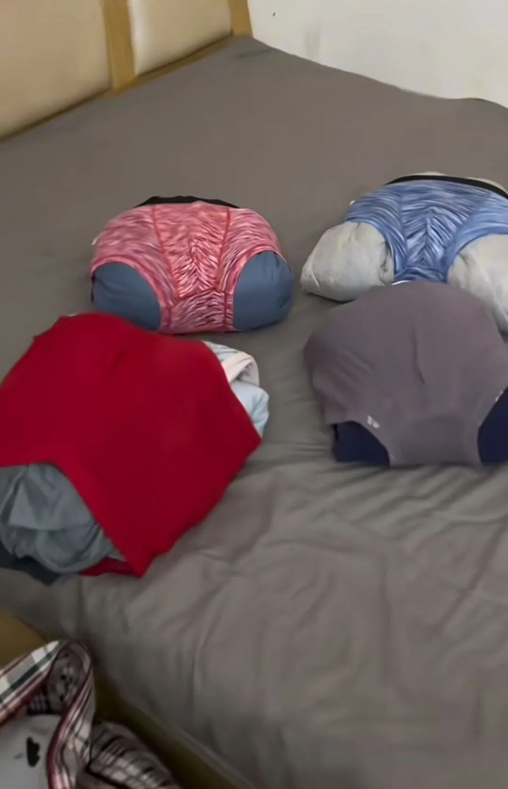 1.出去旅游,男东谈主把每天要穿的穿着皆打包成一团,说是为了浅易,不得不说,简直很浅易,即是有点瞻念瞻念 。