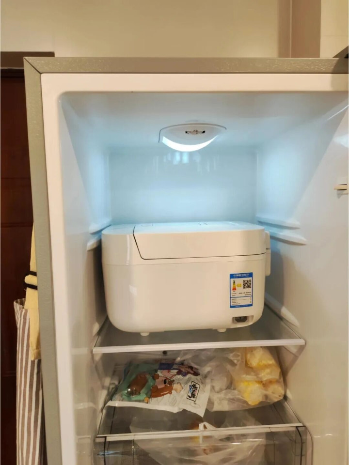 7.叫他把剩饭放雪柜,他是听话的,连电饭煲皆送进去了。