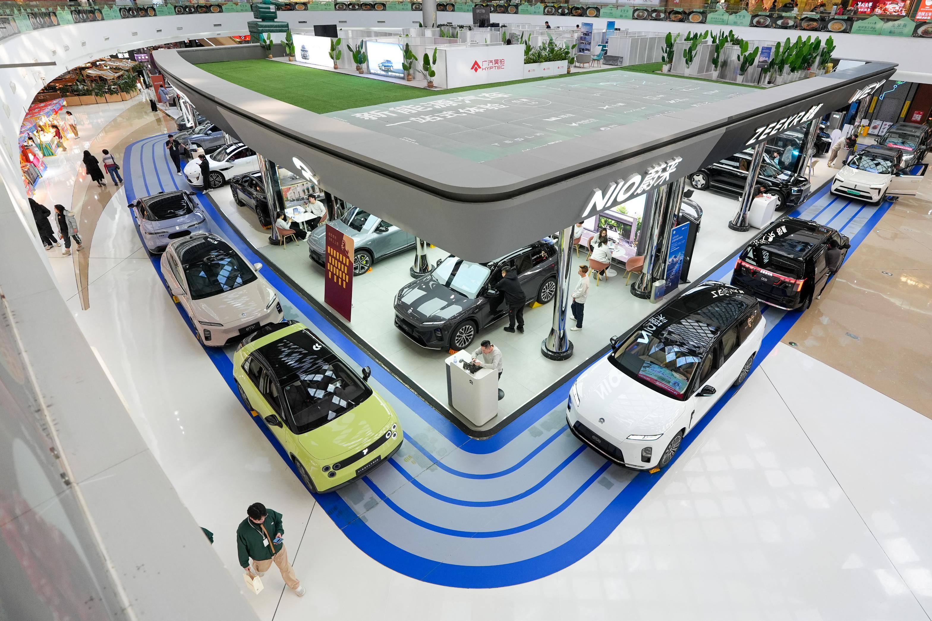2026年2月26日 在北京市向阳区一个阛阓内,市民在了解新能源汽车。图源新华社