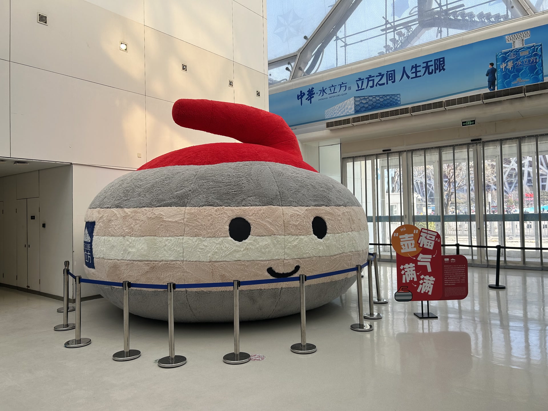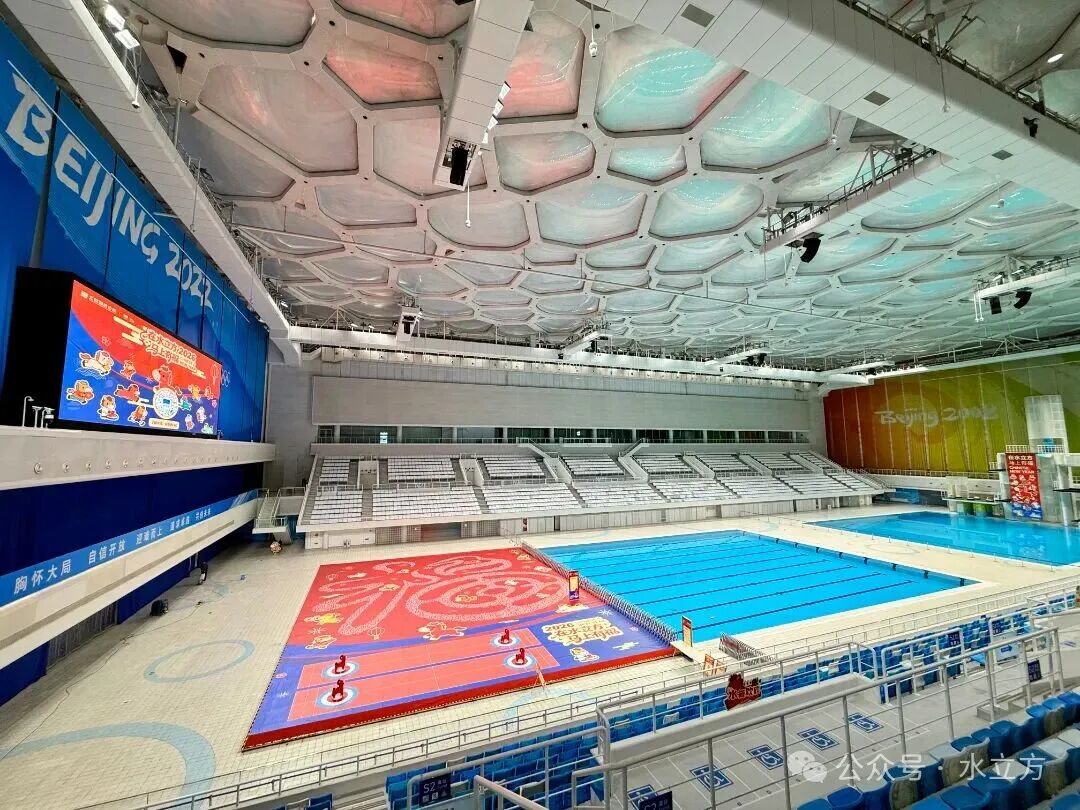 北京日报客户端记者在“水立方”场馆内也感受到浓浓的年味儿。两个打卡点外,场馆走廊还有琳琅满倡导非遗市场和艺术画展。比赛大厅里,池岸大地铺着巨幅红色“福”字,傍边“萌马版”真谛冰壶游戏蛊惑不少青少年体验。